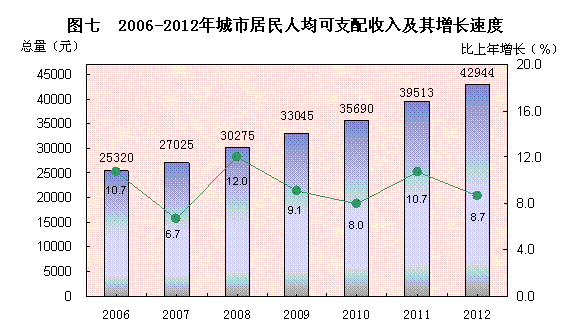 全年城市居民人均可支配收入42944元,农村居民人均纯收入24944元,分别增长8.7%和9.2%。